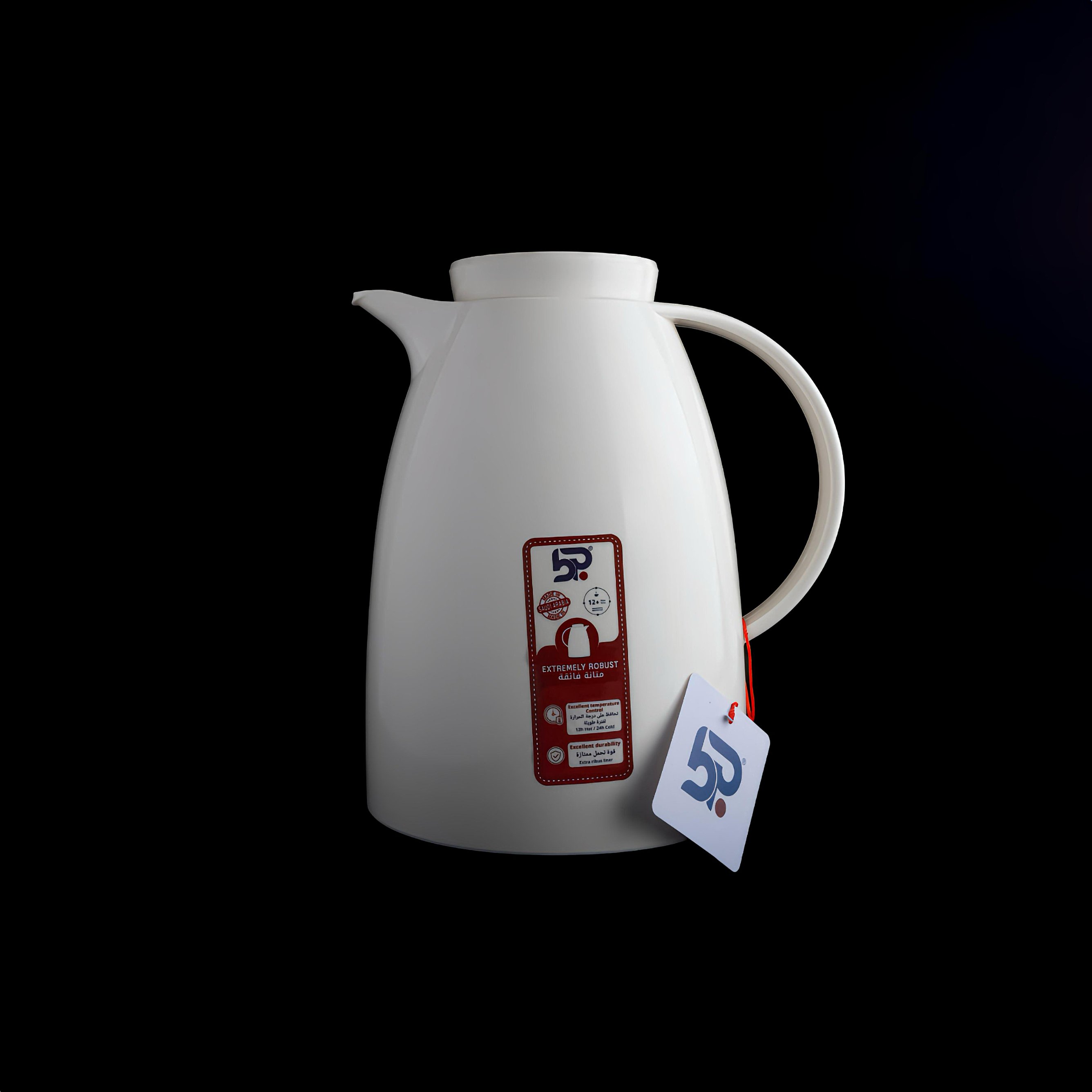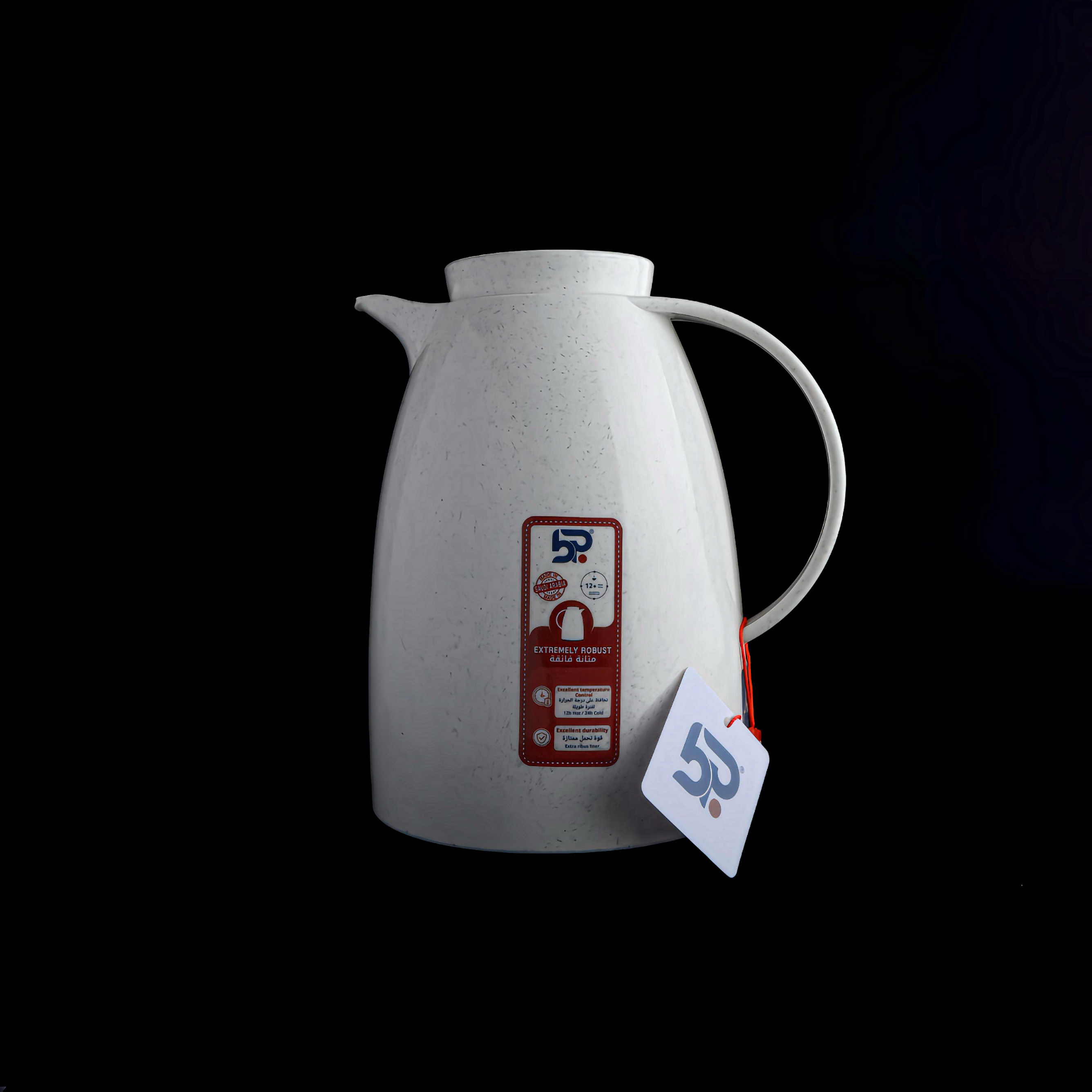 - المواد: هيكل ABS خارجي + بطانة زجاج مفرغ داخلية.